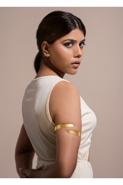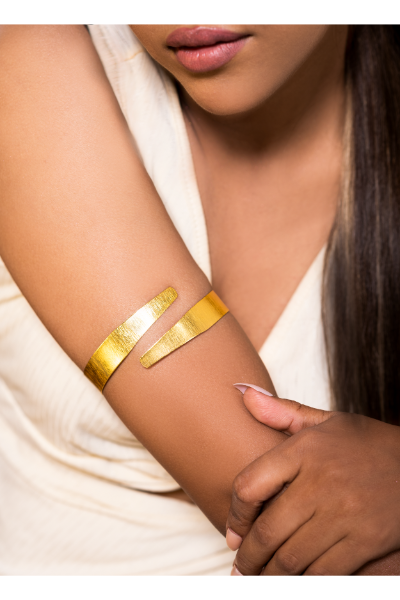The enduring charm of both its Greek-inspired design and opulent gold plating ensures it remains a cherished accessory for years to come. Embody the regal grace of ancient Greece with our Greek Goddess-inspired arm cuff.